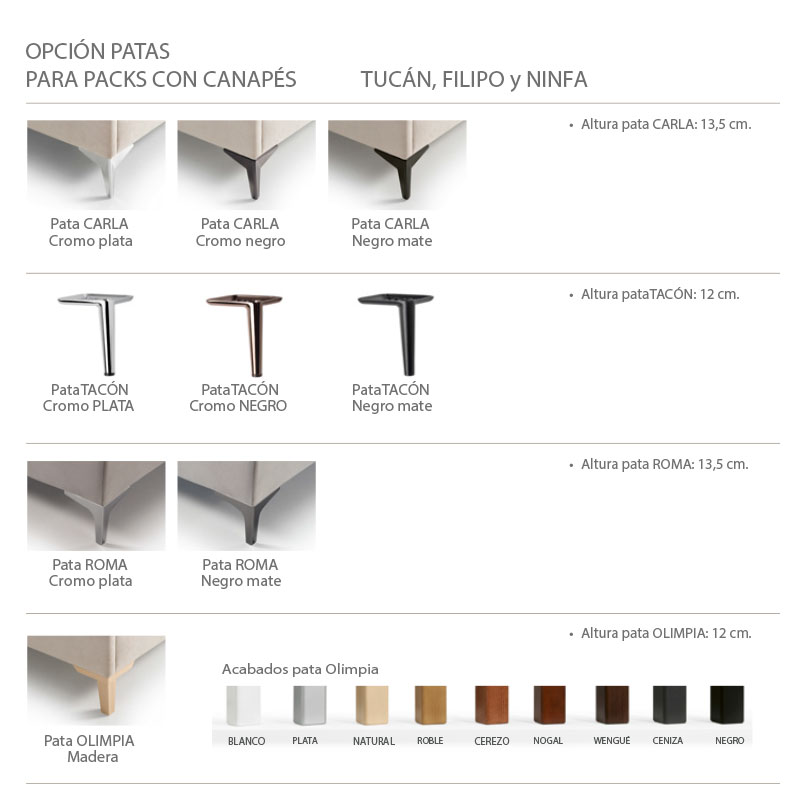 | Estructura | Madera aglomerada 30 mm + esquinas en haya maciza |
