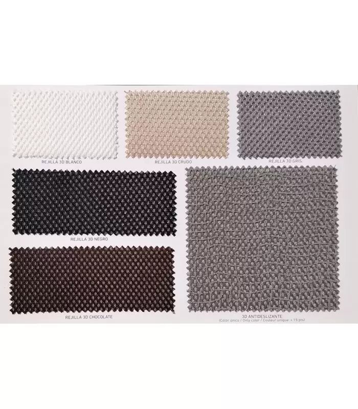 | Tapa | Base tapizada con tejido 3D transpirable |